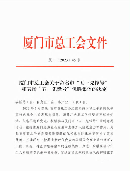 2023年1月以來,廈門銀祥集團(tuán)有限公司工會組織以習(xí)近平新時代中國特色社會主義思想為指導(dǎo),一直積極參與“五一先鋒號”爭創(chuàng)活動。為進(jìn)一步增強新時代工人階級的自豪感和使命感,營造勞動光榮的社會風(fēng)尚和精益求精的敬業(yè)風(fēng)氣,廈門市總工會授予廈門銀祥肉制品有限公司鹵制班廈門市“五一先鋒號”先進(jìn)集體稱號。